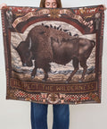 This design draws inspiration from a wide range of sources, starting with the dioramas at the American Museum of Natural History. The American Bison was decimated from 60 million to just 541 in 1889 in an attempt to subjugate the Native American people. The last bison in Oklahoma county was killed in 1876, a date noted in the design. The design references American Folk Art objects and many symbols and signs from fraternal societies (which have been reworked and repurposed to serve as objects of reverence toward nature. The beehive flag symbolizes the need to work together to protect the natural world, the tent flag symbolizes the protection we must offer all species and the two pillars represent the strength & stability required to do so.