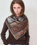 Measuring 90cm sq. (appr. 35" sq), 100% silk with rolled edges, dry clean only.