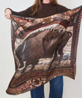 Every Sabina Savage design is hand illustrated, telling the story of the collection through the composition and details. The scarves are drawn in full, and the four corners of each scarf hold individual elements, ensuring the wearer will display a different feature however the scarf is folded. Each illustration takes around six weeks to complete.