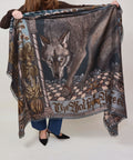Wolf You Feed, 195cm silk rectangle, gunmetal