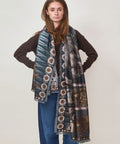 Measuring 195cm x 135cm (approx. 77x53in.), 100% silk with hand fringed edges, dry clean only.