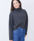 We love this fabrication from Vanessa Bruno - it's tested and trusted at tea & oranges.  Made of 50% merino wool, 50% yak, we find it soft and cozy with a beautiful drape.  The Ballerine is a boxy, slightly cropped turtleneck style with a saddle shoulder construction.  It's meant to be worn with ease that oozes comfort.  Designed to run big.  Hand wash or dry clean.  Jenna is 5'8" and wearing the small.