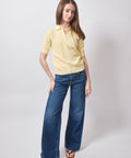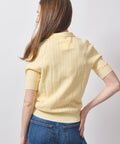 This cotton–cashmere sweater is finely knit with delicate pointelle detailing and a softly structured polo collar, lending quiet elegance to an everyday silhouette. Light, breathable, and beautifully balanced, it feels thoughtful rather than showy—a piece that rewards a closer look and wears with enduring grace. 70% cashmere, 30% cotton. 0=XS/S 1=Small/Medium 2=Medium/Large. Lindsay is 5'6" and wearing the size 0.