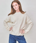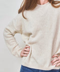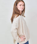 Masters of understatement, Evam Eva simply refers to this sweater as their wool pullover, but it is a very unique blend of fibers that yields a wonderful sweater.  Fox and wool fibers are blended to make a sweater that is exceptionally light and soft, with a bit of nylon added for durability.  It's a simple pullover, simply stunning and wearable - qualities known to the wearer first.  60% wool, 30% blue fox, 10% nylon.  Made in Japan.  Size 1=small/medium size 2=medium/large. Lindsay is 5'6" and wearing the size 1.