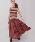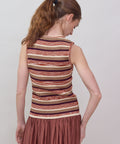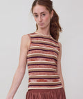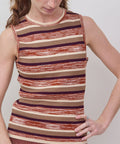 Fitted sleeveless top from Maria Cher in a sporty yet sophisticated stripe. Ribbed construction creates a cozy feel, but this piece is versatile and perfect for wearing alone or layered under your favorite jacket or cardi. 90% Viscose, 10% Nylon. Hand wash, dry flat. Lindsay is 5'6" and wearing an XS.
