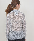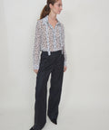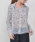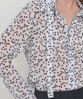 A layer of femininity and fluidity defines this blouse from WE-AR4. A tailored silhouette in a semi-sheer star print, this top is crafted from a soft crepe with gently draping detachable ties. Contrasting silver buttons add a touch of elegance. Great alone or layered under a jacket. Front breast pocket. 100% Polyester. Dry clean. Lindsay is 5'6" and wearing an XS.