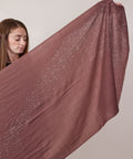 Discover the magic of the cosmos in this beautifully embroidered scarf from Janavi. Crystal-like beads are hand applied into a flowing celestial pattern, creating a galaxy-like shimmer. Stunning and utterly unique—this piece brings the wonder of the night sky to your wardrobe while wrapping you in coziness. 100% merino wool, hand beaded and embroidered, 70x200cm