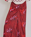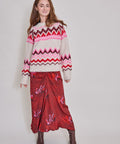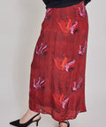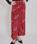 Elegant midi skirt from Maria Cher features a fluid silhouette in a bold pattern. Gathering down the front center seam creates visual interest and a slim fit. Pair with the coordinating Julieta blouse from the brand, for a show stopping ensemble. Also looks great with a simple cashmere sweater so the design and pattern are forefront. Fully lined with back zipper closure. 100% viscose. Hand wash dry flat. Lindsay is 5'6" and wearing a size XS.