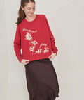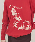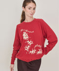 Always a favorite from The Great, the College Sweatshirt is reminiscent of the well-worn sweatshirts we’ve collected for decades. This version features a Christmas sleigh motif. Cut from washed terry, the sweatshirt has a vintage feel and signature slit on the left cuff. Of course looks great worn with denim, but don't be afraid to pair it with feminine skirts or floaty dresses. Handcrafted locally in Los Angeles, their process ensures beauty and uniqueness so that no two pieces are alike. 100% Cotton. Machine wash cold, tumble dry low. Sizing: 0=XS, 1=S, 2=M, 3=L. Lindsay is 5'6" and wearing a size 0.