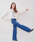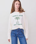 You'll be throwing this cropped top from ASKK on all season long. California cool girl tee with a cheeky party graphic. Round neck, long sleeves. 100% Cotton. Made in LA. Wash in cold, tumble dry low. Lindsay is 5'6" and wearing a size XS.
