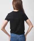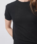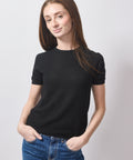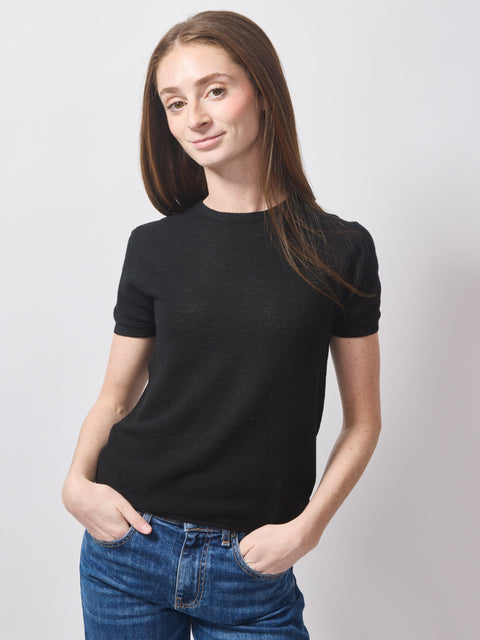 Quietly refined, felt and seen. This fine cashmere tee is softly knit with subtle horizontal texture that adds depth without distraction. Lightweight and impeccably finished, it elevates the simplest silhouette with understated luxury. Proof that the most considered pieces speak in a whisper. 100% cashmere. 0=XS/S 1=Small/Medium 2=Medium/Large. Lindsay is 5'6" and wearing the size 0.