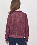 A balancing act of sparkle and casual, the Thelma sweater from Momoni is made with a blend of mohair and sequins. Round neck with a folded neckline and drop shoulders. The silhouette exudes ease while also being special. 60% polyester, 20% mohair, 12% polyamide, 8% wool. Hand wash or dry clean. Runs true to size. Lindsay is 5'6" and wearing the XS.