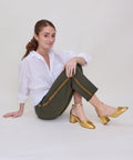 A California-meets-Italy take on the chino from Frank & Eileen that delivers instant/effortless style all year. Relaxed fit, distressed hem with a fun gold tuxedo stripe down the leg. Pre-washed and pre-shrunk. 100% cotton. Machine wash warm, tumble dry low. Lindsay is 5'6" and wearing a size 2.